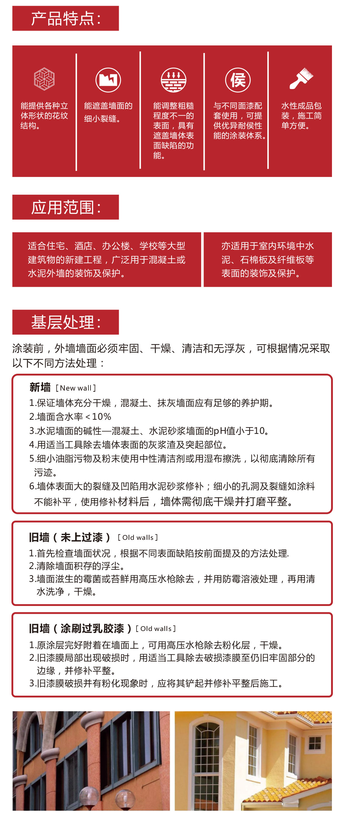 特殊改性的丙烯酸類(lèi)中層料,能為墻體提供立體裝飾效果。